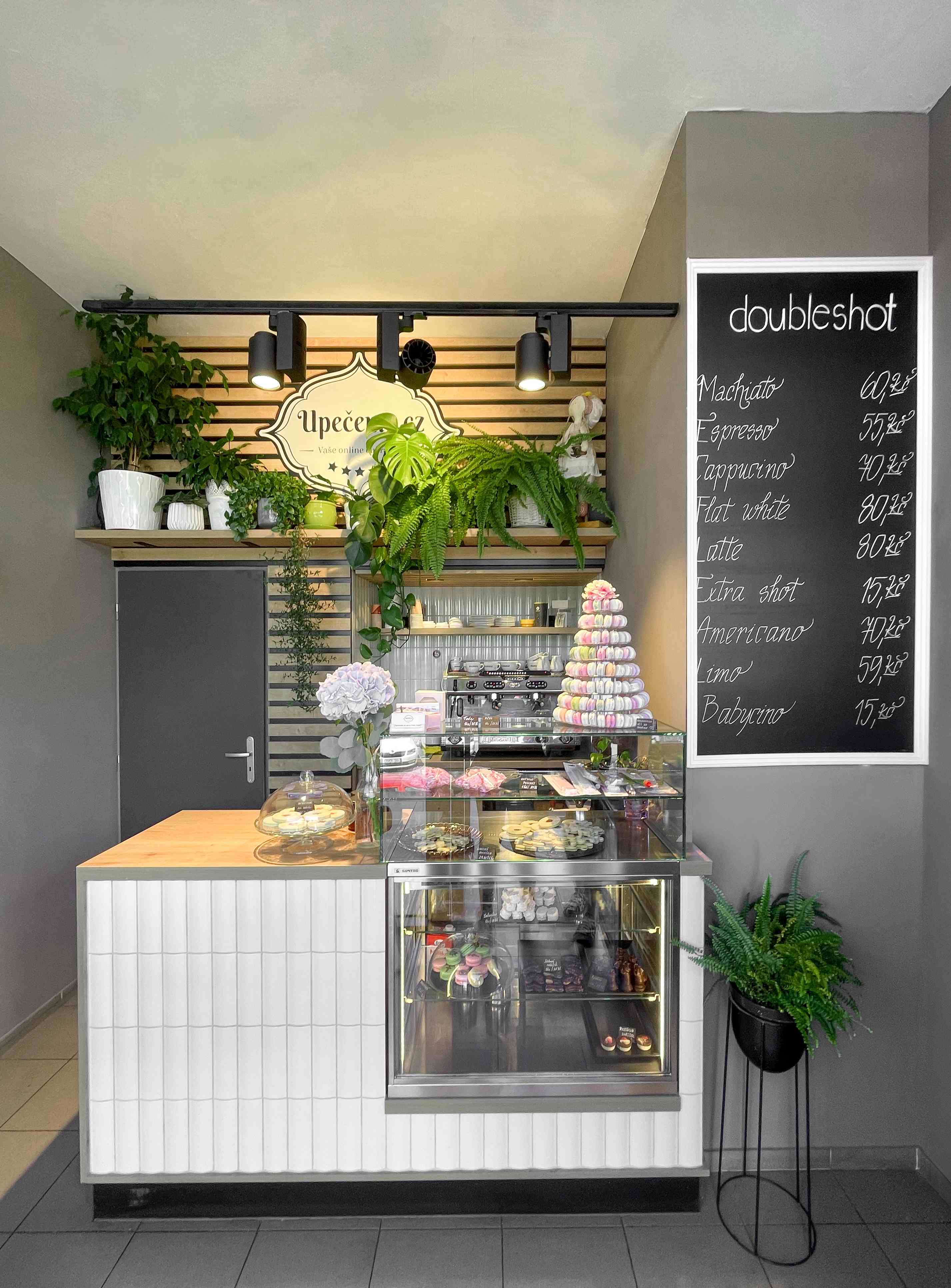 Pro provozovnu Upečeme jsme vytvořili jednoduchý a funkční design, který efektivně využívá prostor 9 m². Tento interiér je primárně určen pro rychlé a pohodlné vyzvedávání objednávek z e-shopu s cukrářskými výrobky. Cílem bylo vytvořit čisté a přehledné prostředí, které usnadní komunikaci mezi zákazníkem a personálem, a zajistí tak hladký průběh výdeje.