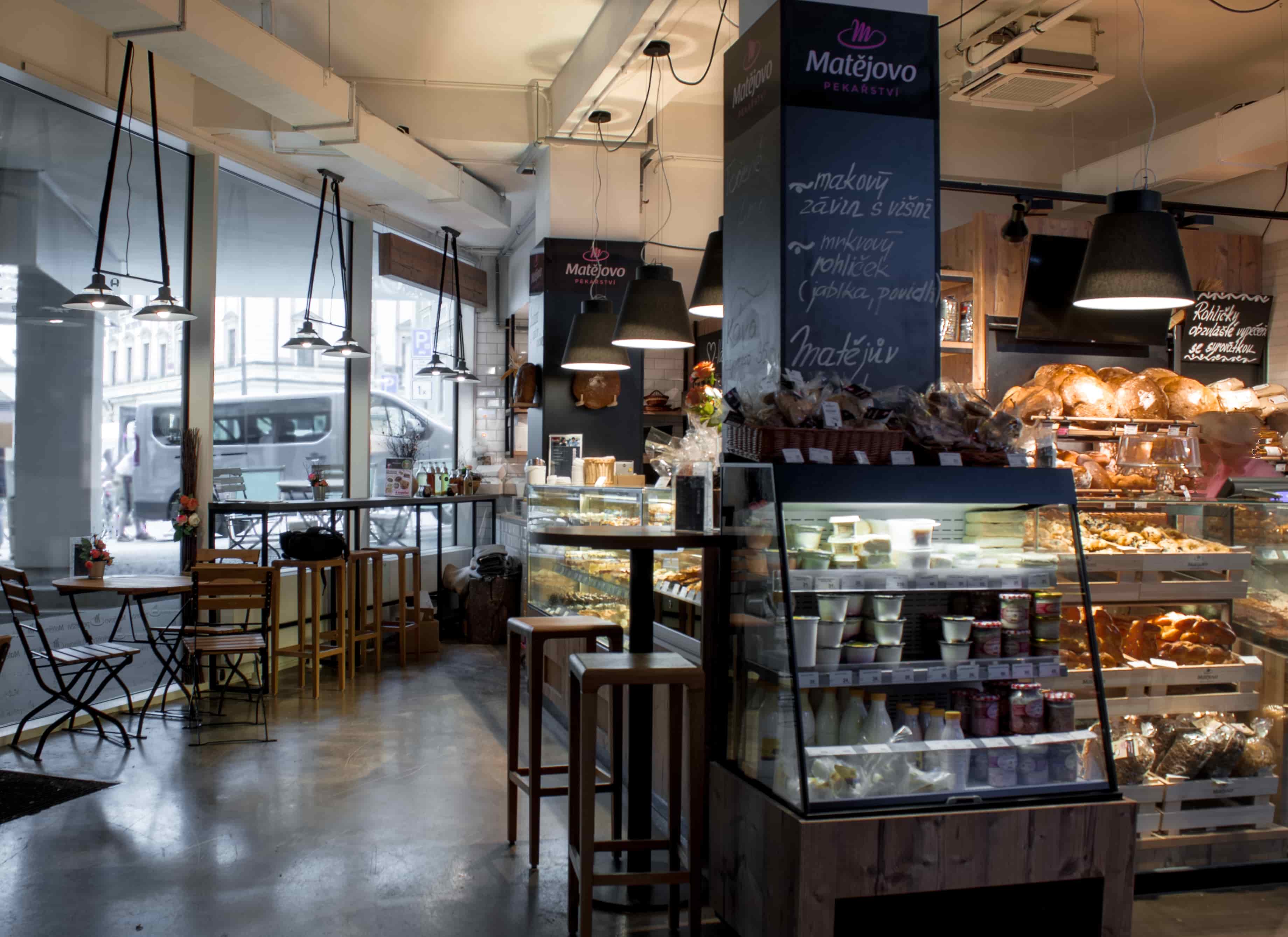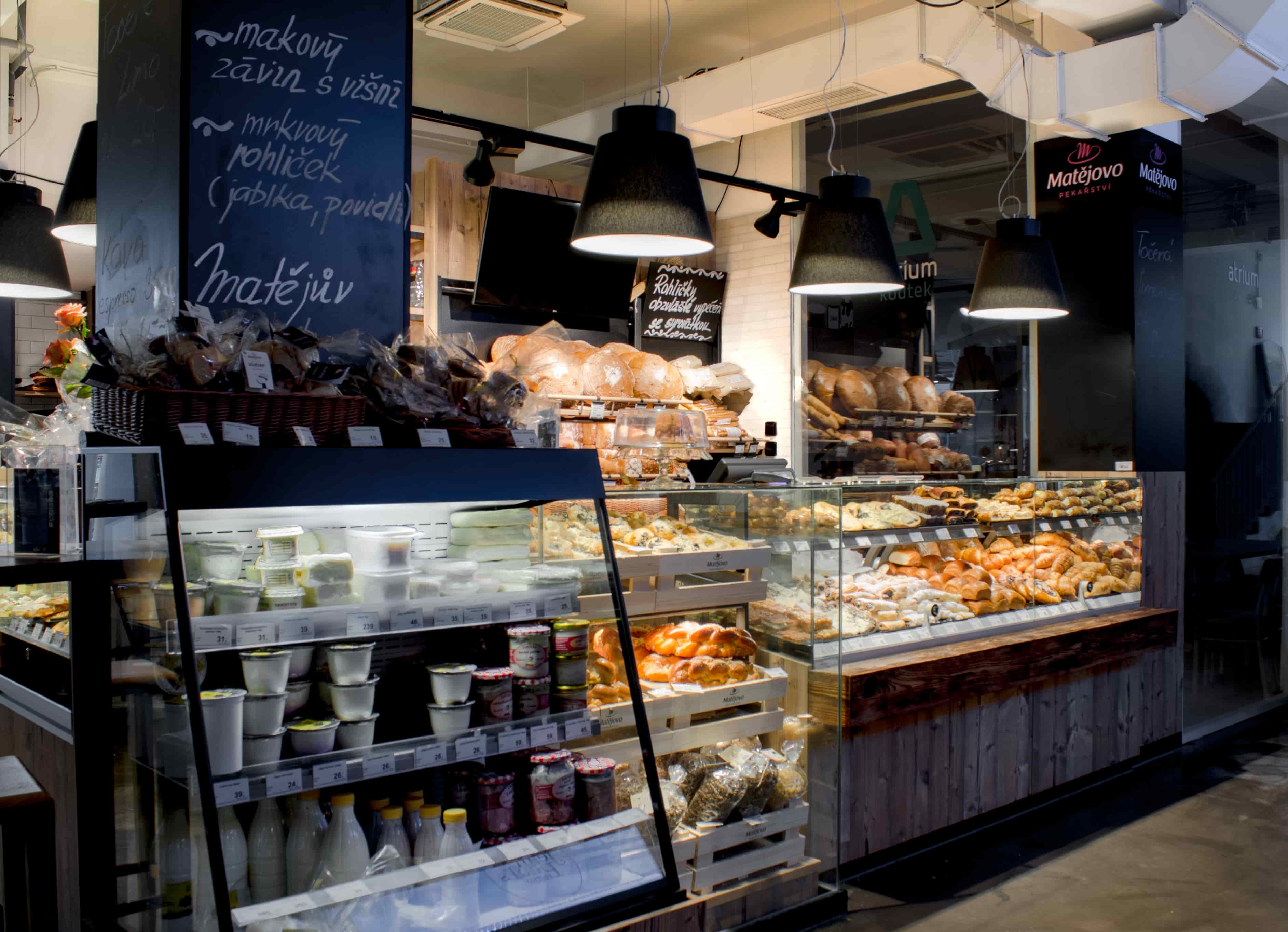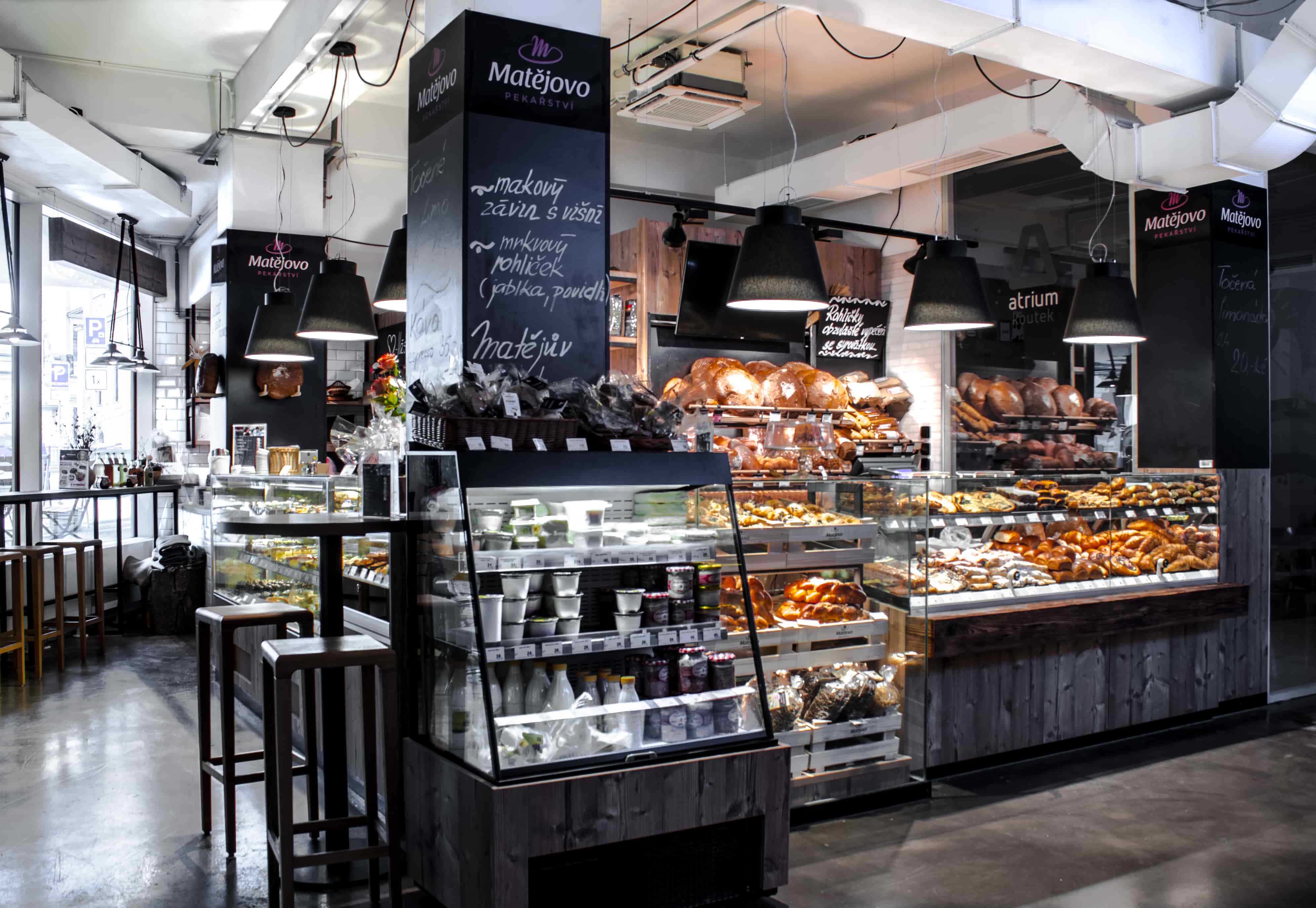 Prodejna umístěná v netradičních prostorách na Zelném trhu v Brně, koncepčně zapadá do záměru kryté tržnice zaměřené na gastronomii a doplňuje ostatní prodejny zde umístěné. Realizace prodejny na ploše 56m2 potvrzuje, že i na této ploše lze vybudovat vydařený projekt prodejny s velkým obchodním potenciálem. Jako u všech nově zřizovaných prodejen Matějova pekařství, se zde spojuje odkaz na tradici v podobě dřevěných dekorů a jednoduchých bílých obkladů, s moderním vybavením prodejny v podobě vizuálně i funkčně vynikající pekařské vitríny Aichinger, LED osvětlením s pekařským světelným spektrem či pecí, která umožňuje dálkové připojení a kontrolu výrobního procesu.